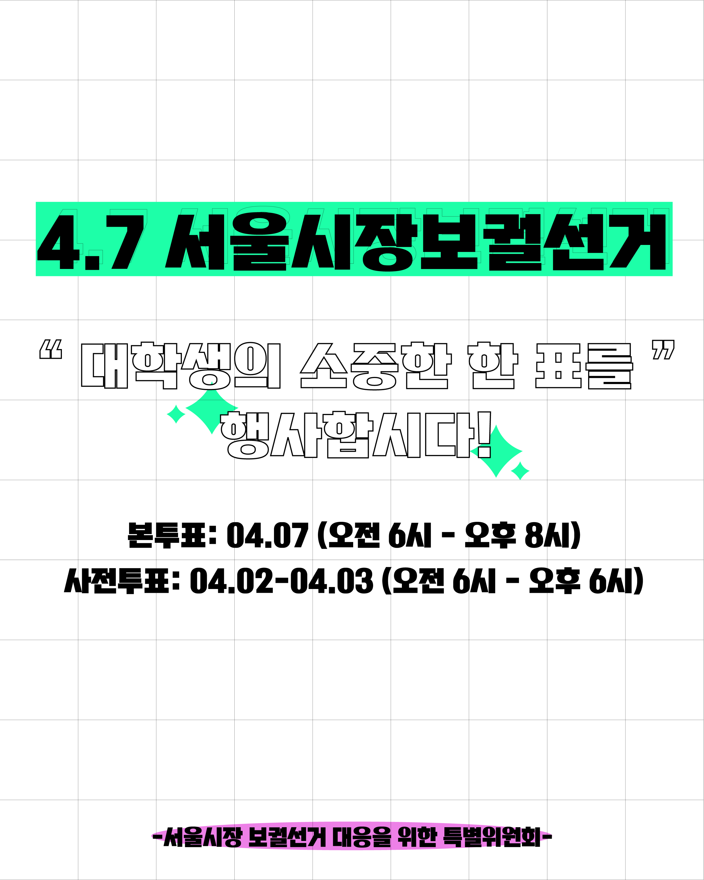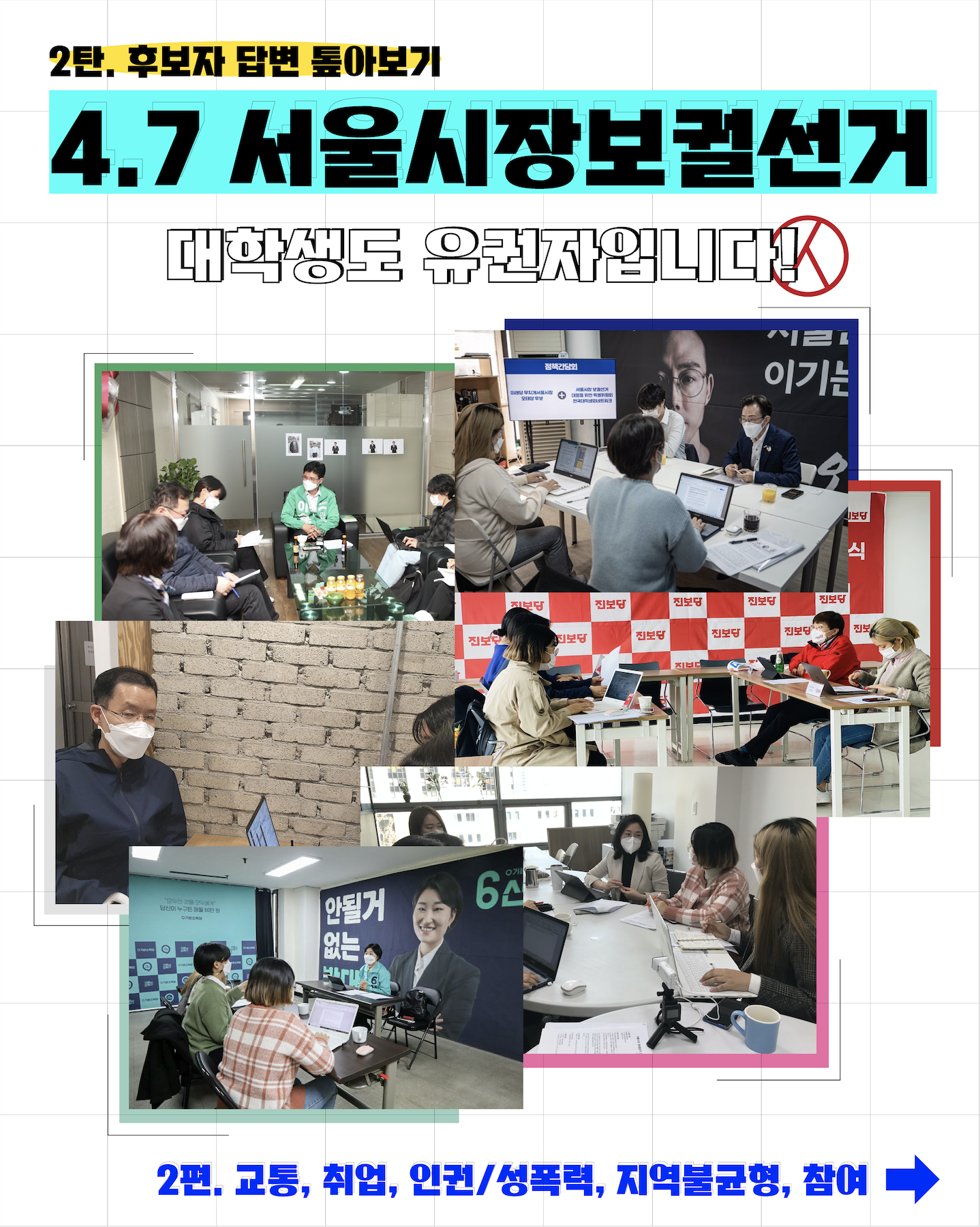| 제목 | 4.7 서울시장보궐선거, 대학생도 유권자입니다! <2-2탄> | 날짜 | 2021-04-02 | 조회수 | 909 |