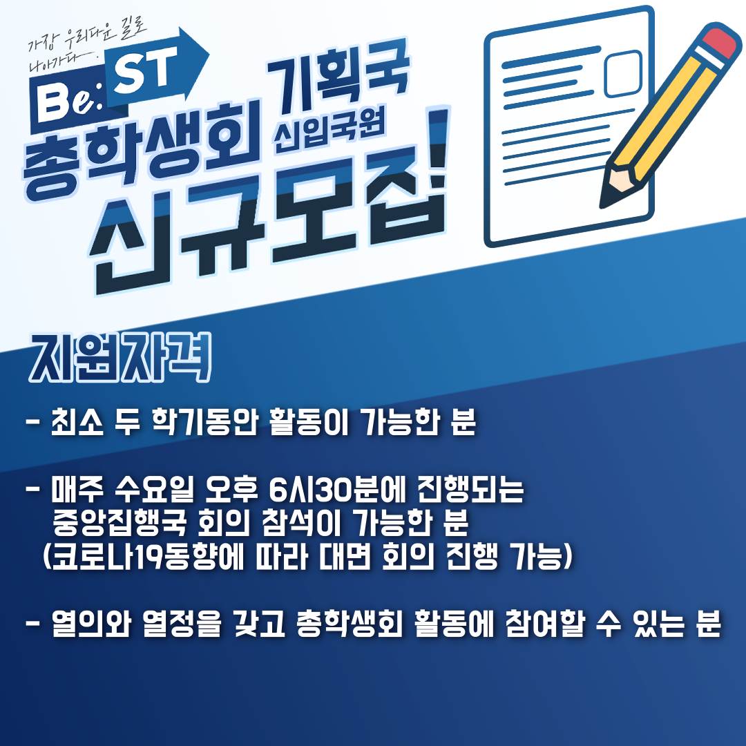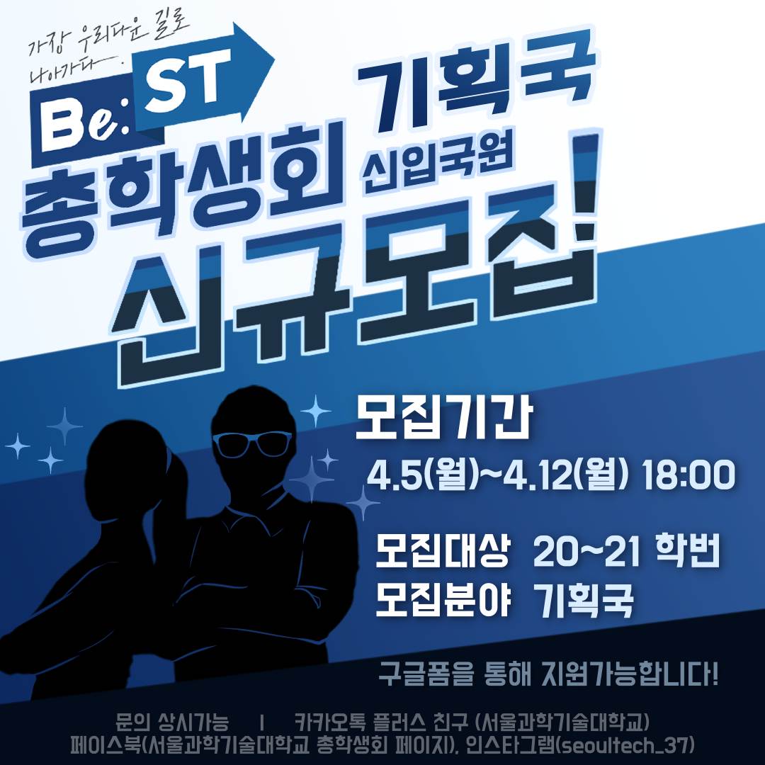 2021년, 서울과학기술대학교 제37대 Be:ST 총학생회와 함께할 국원을 추가모집합니다!