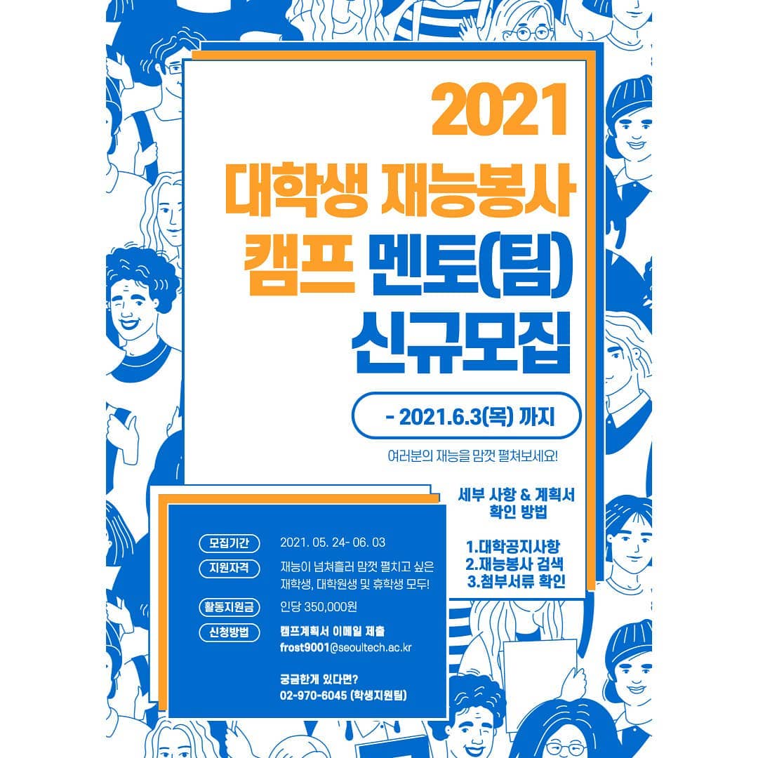 | 제목 | 2021학년도 대학생 재능봉사 캠프 사업 안내 | 날짜 | 2021-05-28 | 조회수 | 794 |