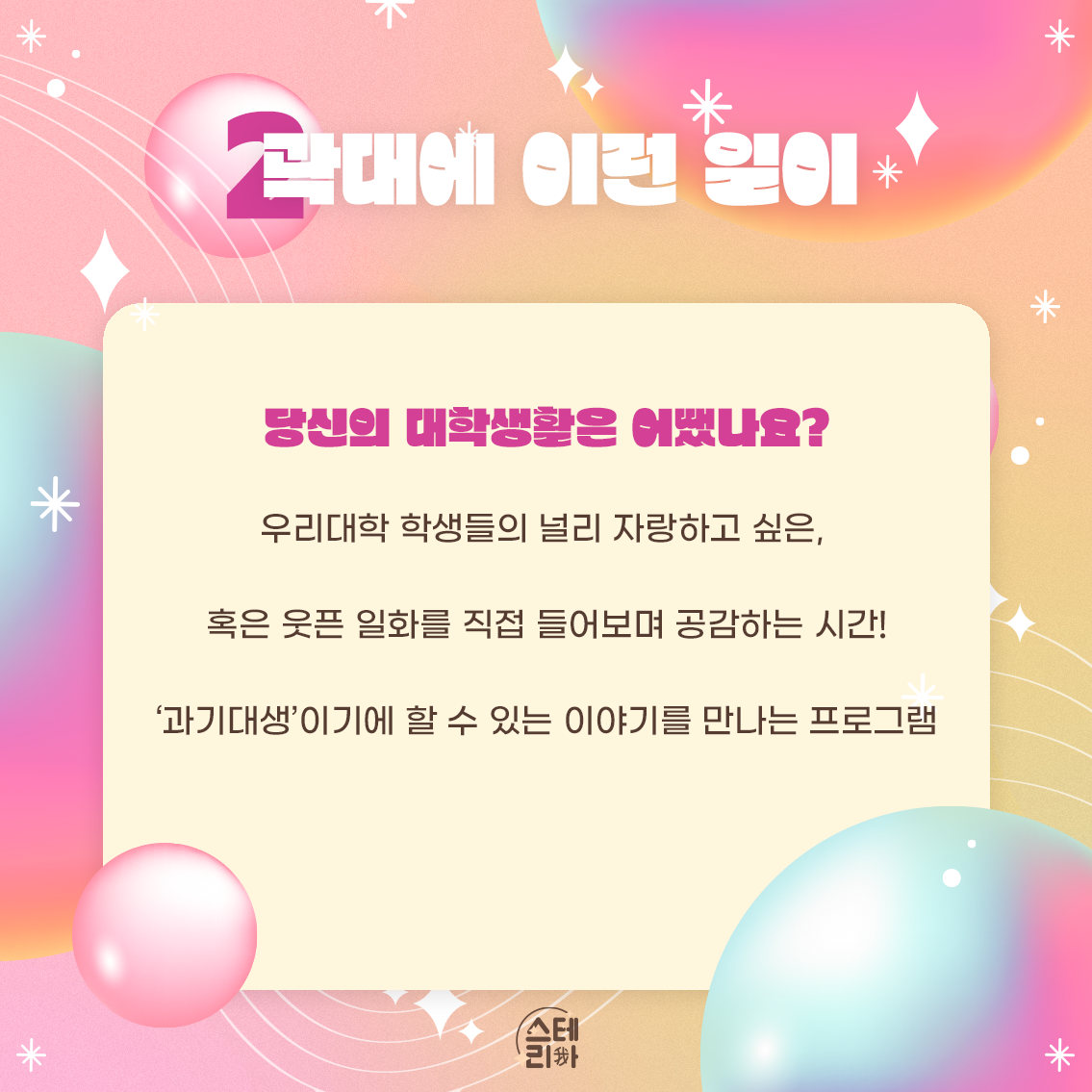 제목 | 너와 함께하는 스테리아💫전지적 과기인 시점 | 날짜 | 2021-09-29 | 조회수 | 1059 | |