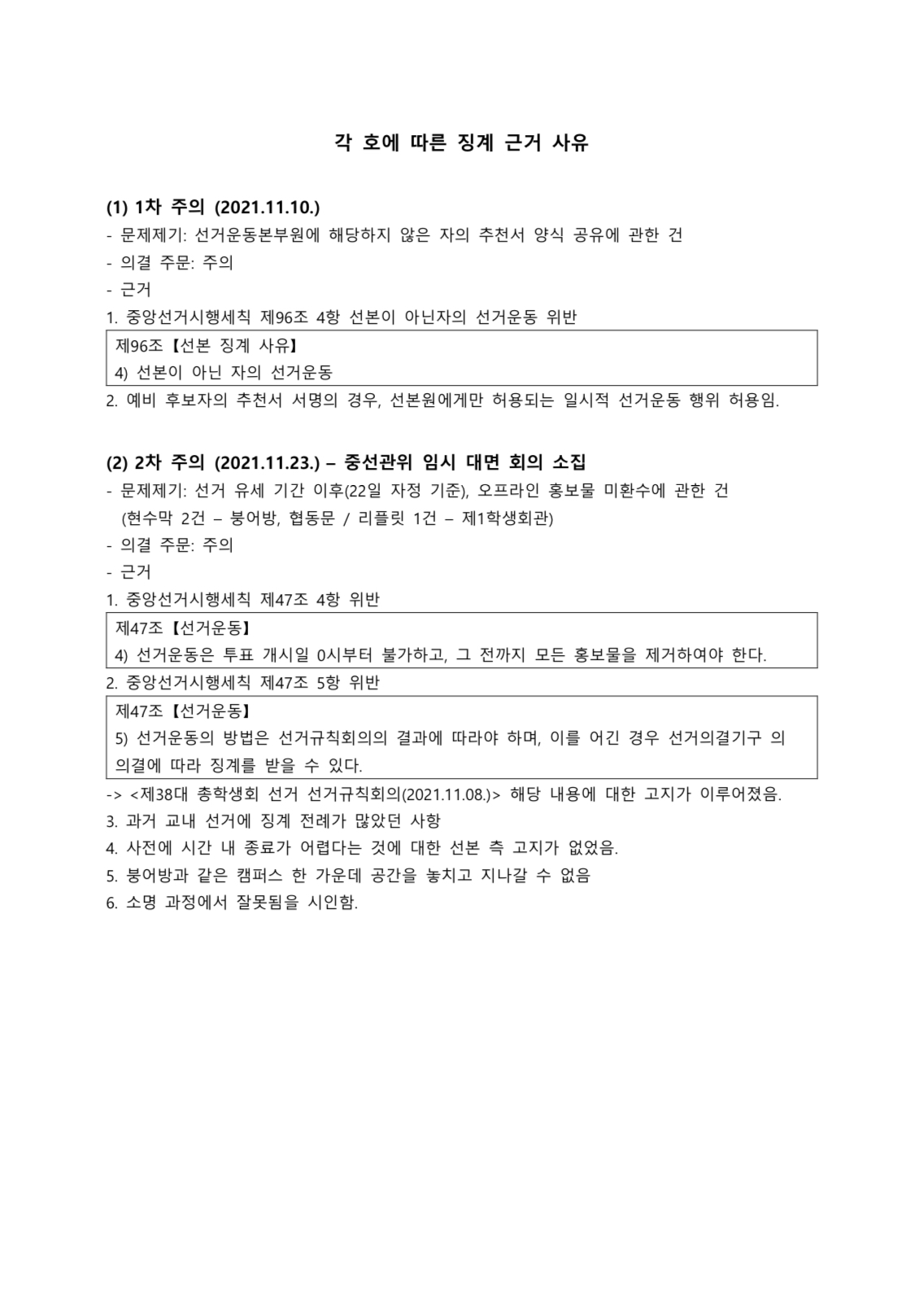 (별첨) 각 호에 따른 징계 사유